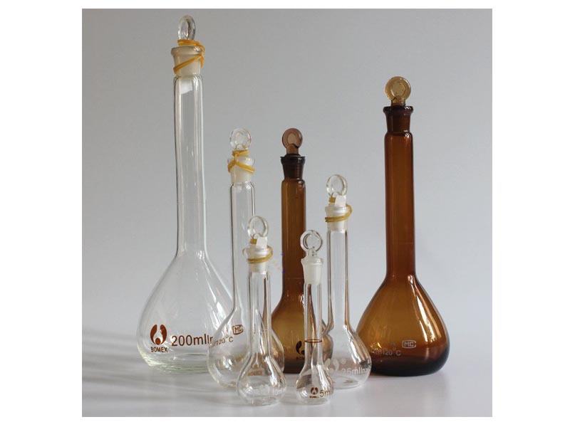 這樣做兩次檢查是必要的,因為有時瓶塞與瓶口,不是在任何位置都是密合的。密合用的瓶塞必須妥為保護,最好用繩把它系在瓶頸上,以防跌碎或與其他容量瓶搞混。