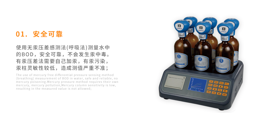 可以同時測量6個樣品無需換算、直接顯示BOD濃度值;