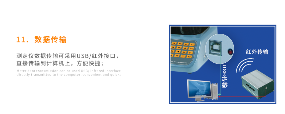 測定儀數據傳輸可采用USB/紅外接口,直接傳輸到計算機上,方便快捷;